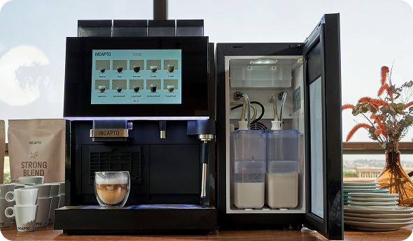 Des machines à café reliées à notre plateforme pour suivre la consommation en temps réel, automatiser les commandes et accéder au Marketplace INCAPTO Professionnel.